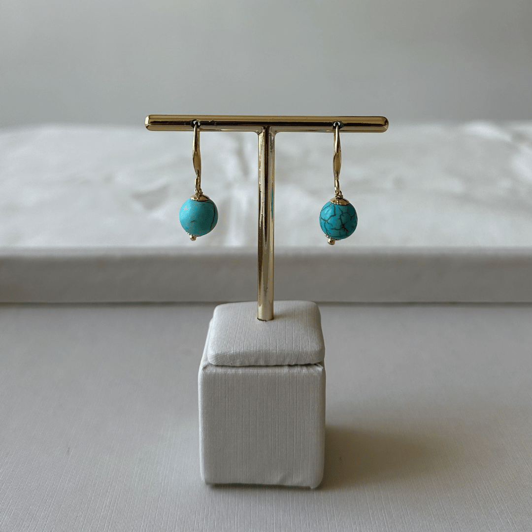 Delicado e elegante, com pedra azul turquesa que traz cor e sofisticação ao visual.
