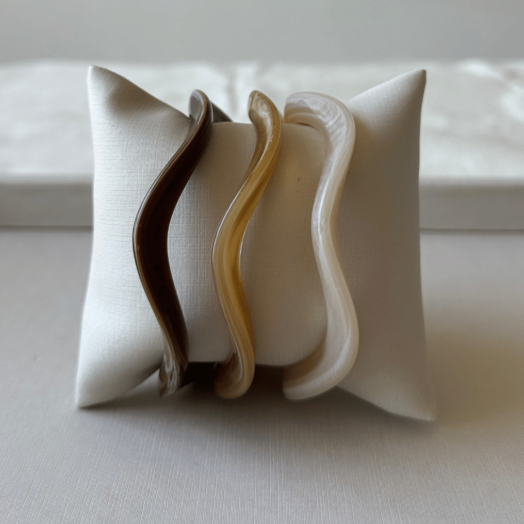 Conjunto com três pulseiras em resina, perfeitas para compor combinações modernas e cheias de estilo.